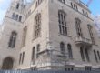 Az épületegyüttes Szentháromság téri, díszes, héttengelyes főhomlokzatának meghatározó eleme volt a középrizalit, és annak szélső tengelyeiből emelt két torony. 1948-ban a rizalitot és a tornyokat is elbontották, az épület oldalszakaszait — mondhatni vállait — összenövesztették. A homlokzat sóskúti mészkőlapjainak és párkányelemeinek kibontása, majd a főbejárat előtti trachit talapzat, valamint a jelentősen elhasználódott acélgerendák elbontása után január második felében az alapozási és pillérek vasbeton szerkezetének szerelésével elkezdődött a rizalit visszaépítése.